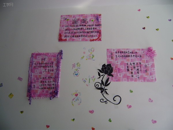 经过两周的精心布置,各寝室都有了翻天覆地的变化。除了整洁干净外,更是充满了家的温馨气氛。布置后的新寝室主题鲜明,立意新颖。有的以欢度国庆为主题,用军训服肩章拼成“六十”两字,以示对祖国六十华诞的祝福;有的走可爱路线,全寝以自制小饰品装扮,让人如梦如幻如入童话世界;有的洋溢着艺术的氛围,犹如走入了艺术的殿堂。