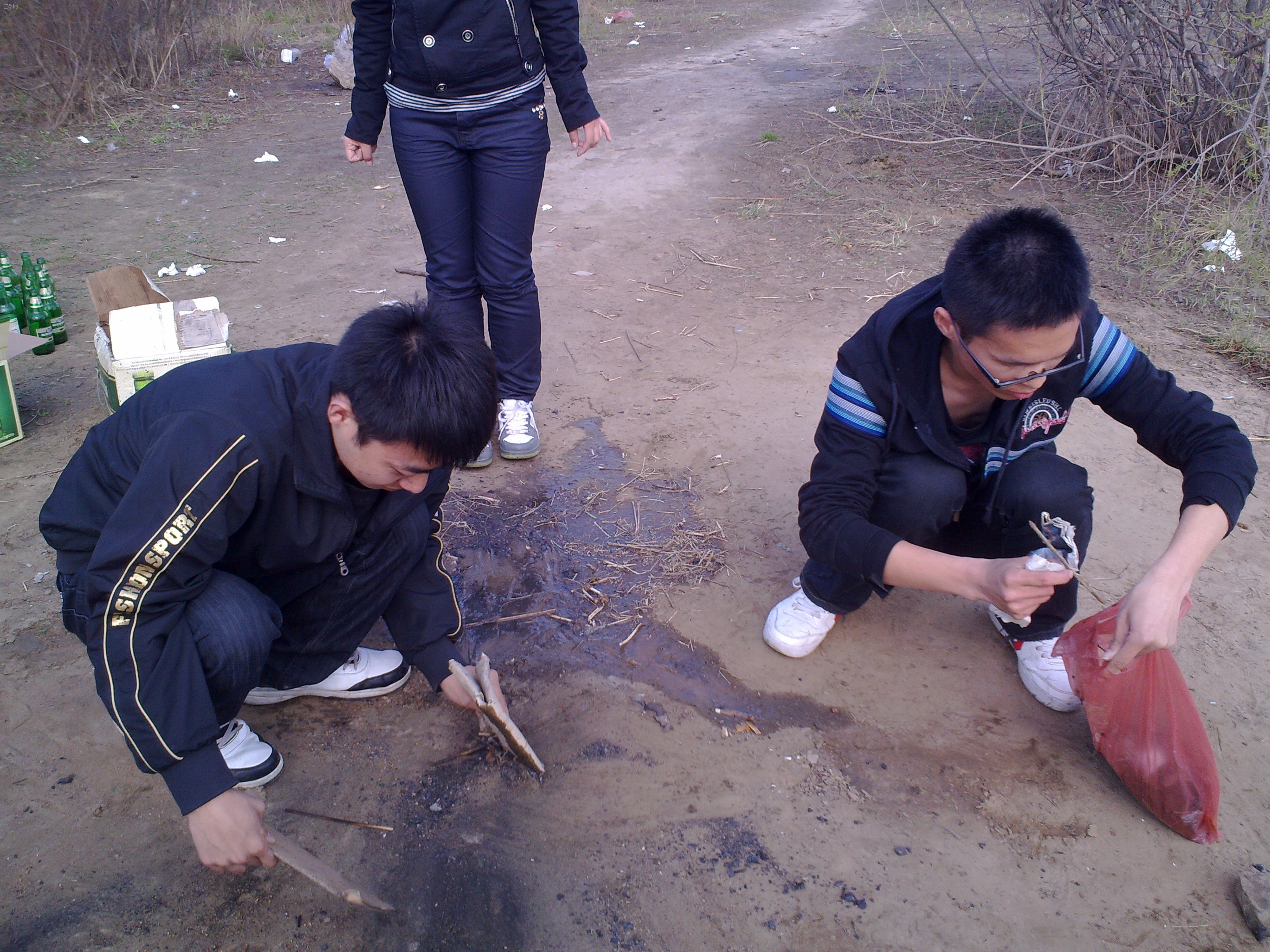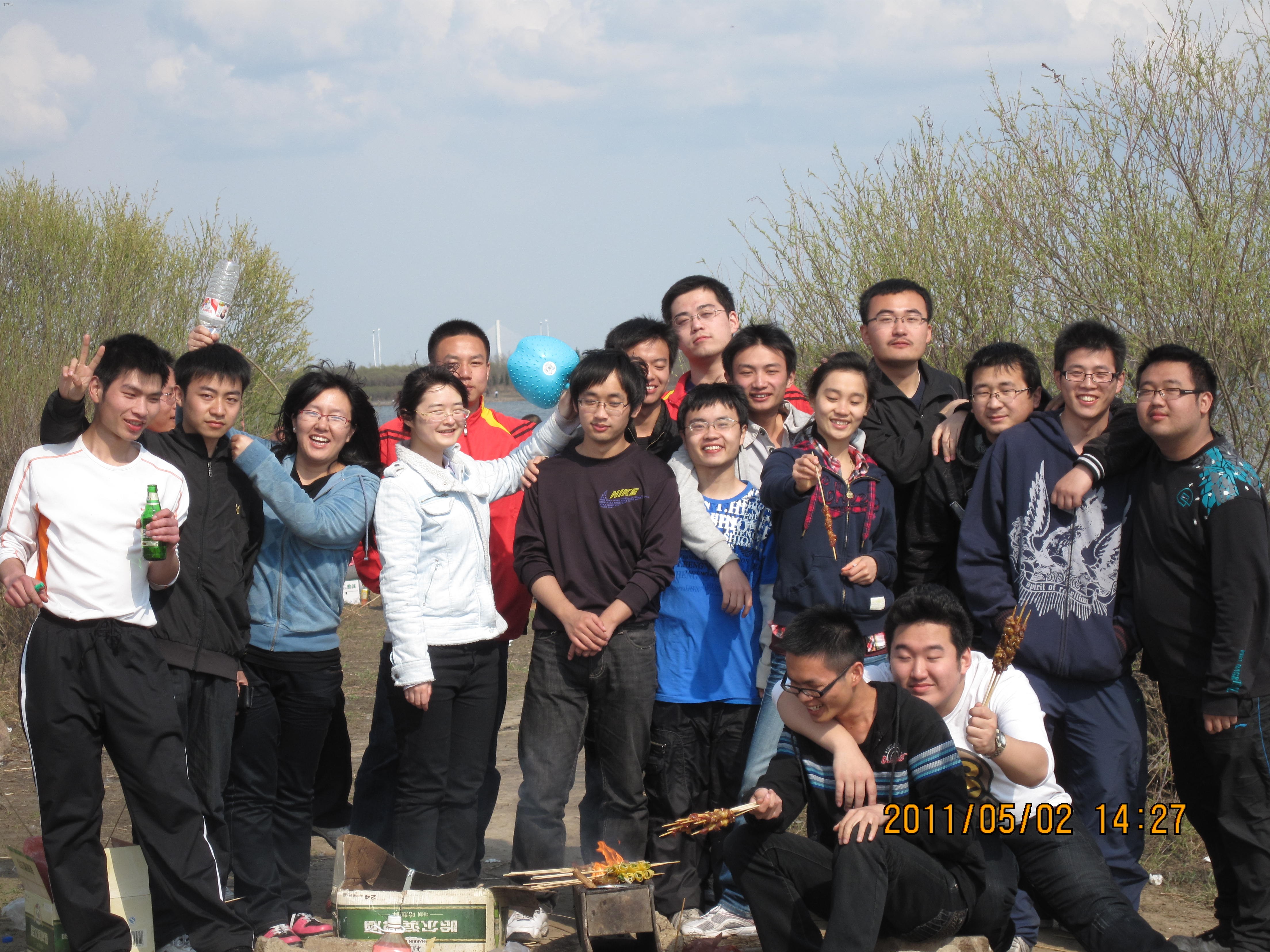 5月2号上午10点,091031班携手091051班共19名同学乘车至松花江畔,进行了一次友谊烧烤。