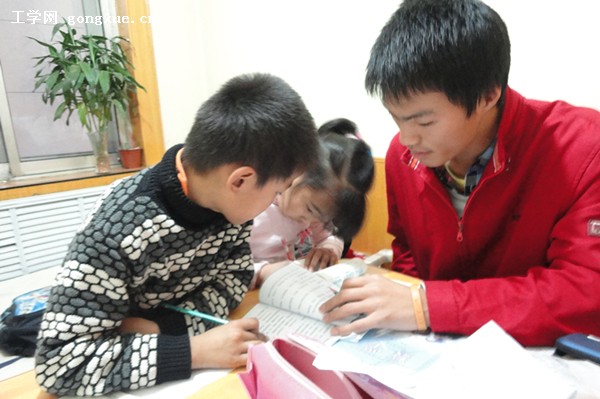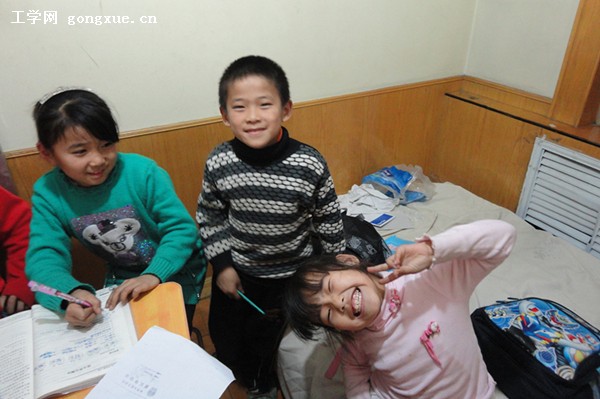 下午一点半,经过同学们精心的准备,几个代表带着大家的礼物和问候到达了姐弟俩的家,一个只有十几平米的合租楼。飘飘一家四人对同学们的来访表示欢迎,同学们将大家的礼物交给姐弟俩并表明来意,随后,1012班的同学便对姐弟俩的功课进行认真的辅导。在交谈中同学们得知,飘飘姐弟俩对大学十分向往,同学们答应他们,过几天有时间就带他们来哈工程大学参观。