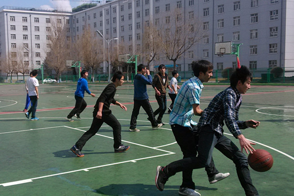 开始之前,由男生们自由商定分成两组,每组有两名替补队员,我们请到20121012班班长陈佳睿担任裁判。由于篮球运动的对抗性,我班女生在场外为他们加油。上半场时,由我班刘亚鑫同学带队的一队进攻强度比较大,突破重重防守,连续进攻了六个二分球,虽然一场阵雪刚刚飘过,但是他们打的大汗淋漓。经过林炜坤带队的二队换了队员之后,从四分猛追到十二分,将比分暂定在十八比十六。到了最后五分钟时,由于运动量过大,明显节奏慢了下来,但在女生们的一句句加油声中,他们还是坚持了下来,最后将比分定格在二十比十六,一队胜。