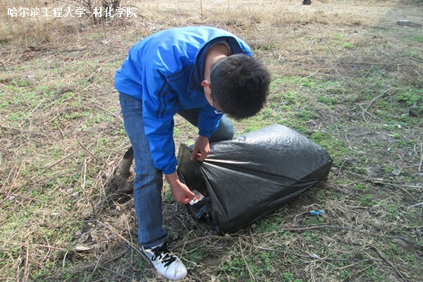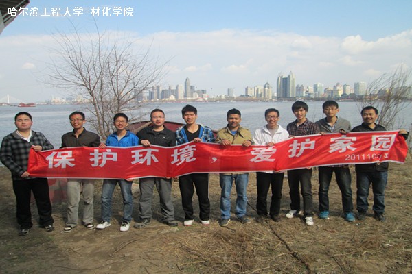 五月一日是五一假期最后一天,同学们齐聚在太阳岛江畔领略自然美景,讴歌造物主的神奇创造。本次活动由团支书冷科组织,大家上午一起做公交车到中央大街然后集体坐船到对岸太阳岛,一路上江风习习,风景如画。大家上岸之后来到江滩树林处,虽然江滩的景色很好但是却非常不和谐的有很多垃圾,尤其是白色的塑料泡沫,大家拿出事先准备好的垃圾袋子,一起合力收集垃圾,努力将江边的垃圾清理干净,并且交到了保洁人员的手中。然后大家拿出事先准备好的横幅,向游玩的游客宣传环保知识,提醒游客们主义环保不要乱扔垃圾,最后大家一起在江滩合影。