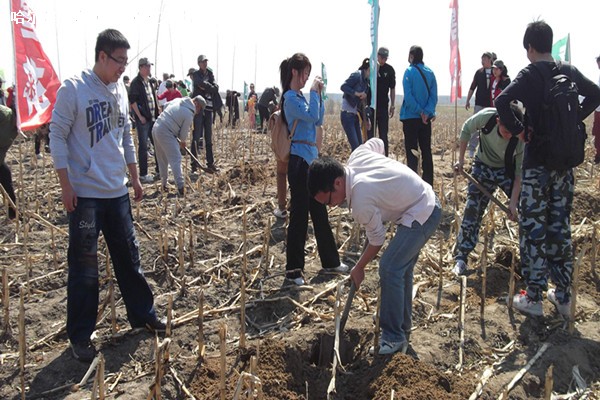 准备工作安排妥当,大家便埋头苦干起来,都想尽自己的力量多种几株树苗,为东北平原多增添几分绿色。不多时,原本一片荒凉的草场在同学们的认真劳动下呈现出一片片的绿色。工作还在继续,时间飞快,很快黄昏将近,到了收拾行装准备回校的时候了。看着努力了一天的劳动成果,同学们的欢声笑语飘满了这显现着一片生机的草场。
