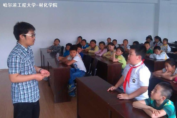 看到同学们演示的实验,小朋友们纷纷探着脑袋,跃跃欲试。照计划,此次活动鼓励小朋友参与到小实验中。工作人员将小朋友们分成几组,发给实验器材和药品。每小组由几个同学带着,小心翼翼的进行着实验。教室里一片欢声笑语,小朋友们高兴的向哥哥姐姐们展示着他们的实验成果。相互竞争着,唯恐落后。