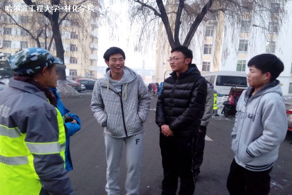 12月10日,20131052班在哈工程的南体育场举行了每学年一次的团聚爱心活动,原定计划是要在游乐园帮助环卫阿姨清扫地面的,但是由于天气原因,游乐园在冬天是不对游人开放的,所以我们将地点改为了哈工程的南体育场。虽然没有依照之前的计划去游乐场,但是大家的热情却一点都没有减退,在南体育场看到了垃圾就随手捡起来,即使是南体育场的雪很厚,有的地方进去了雪都到脚踝了,但是看到了里面有垃圾,同学们都毫不犹豫的走进去将垃圾捡出来扔到垃圾桶里面,就连旁边的环卫大爷看到了我们的行为都赞不绝口,夸我们有社会责任感,帮他们减轻了负担。