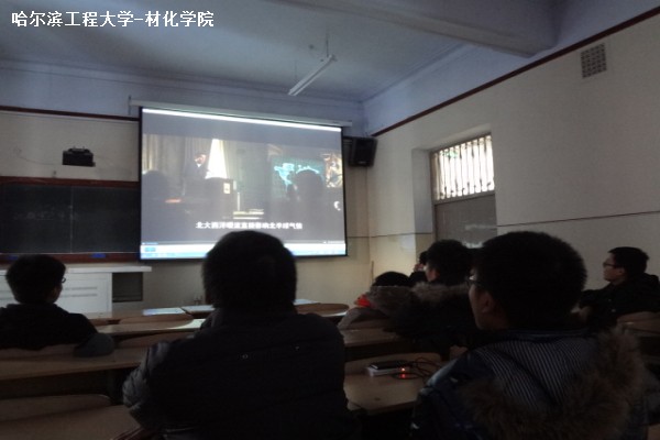 在影片结束后,同学们热烈的讨论着有关环境的问题,并且积极发言,说出自己的看法和作为当代大学生我们应该做的事情。