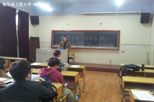 “现在绝大多数的同学都想考研,可考研也是存在一定风险的。去年我们专业考工大的学长学姐至少有七个人,可最终被录取的只有一个”。一名同学说到。他把自己了解到的信息分享给大家,以便参考。台下同学积极踊跃,你一言我一语。也有同学把自己心里的困惑提出来,希望能集思广益。大家没让他失望,针对他的迷惑,提了许多建议,帮助他解决了心里的困惑,找准方向。