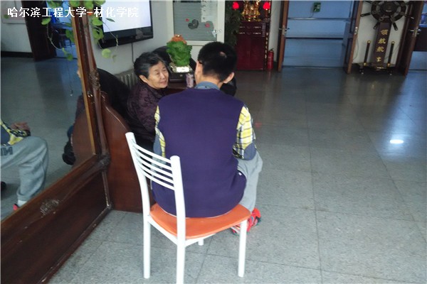 在本次活动之前,团支书与护养院取得联系,约定好活动的时间以及相关的活动流程。当同学们来到护养院时,按照事先的分组,第一个小组的同学们跟随工作人员来到老人们平日锻炼身体的地方,开始清洗、擦拭体育器材,打扫落叶并为食堂搬运了一些蔬菜。第二个小组的同学们则带着买来的水果留在屋内,在认真听过院长对老人们的介绍以及与老人们接触的注意事项之后,与老人们聊天、陪老人们做一些简单的游戏。临走时,我们还给爷爷奶奶们送上了留有我们祝福的明信片。