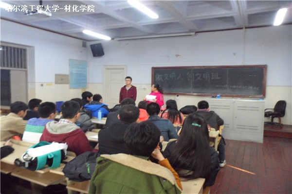 为了响应我校开展的“学风,寝风建设强化月”活动,11月10日中午,在11#123教室,材化学院研一(2)班开展了以“宣传文明”为主题的班会,全体班级成员准时参加。