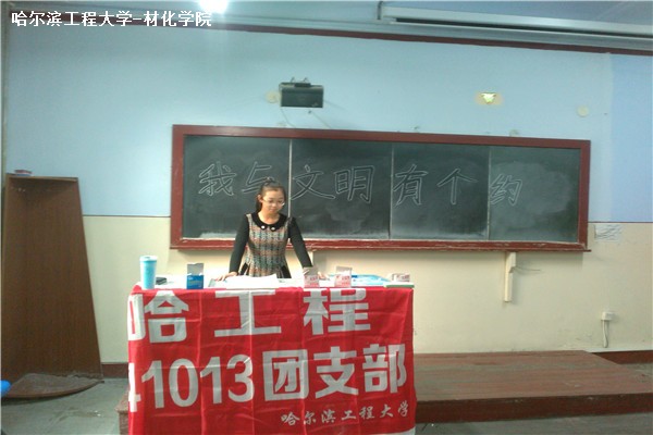 11月9日,哈工程141013团支部“我与文明有个约”主题班会在11#0122教室成功举办,本团支部31名同学全部参加了本次班会。本次班会积极响应校团委“校园文明,从我做起”的号召,班会主要以宣传讨论的形式进行,旨在呼吁同学们从自身做起,共创文明校园。