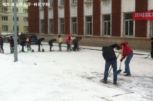 12月5日,材化学院全体2014级研究生在院研究生会的组织下开展扫雪活动,同学们抽出自己的宝贵时间,贡献自己的力量,积极响应学校号召,就是为了保证校园环境的整洁和师生出行的安全。