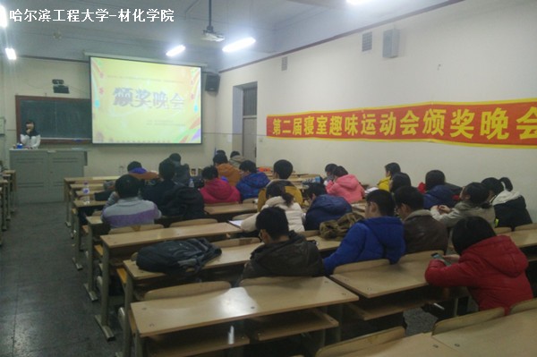 2014年12月4日星期四晚六点三十分,我们在11号楼0134举行了寝室趣味运动会的颁奖晚会,参加晚会的有吕云鹤导员,生活权益部全体成员以及2014级各寝室代表。
