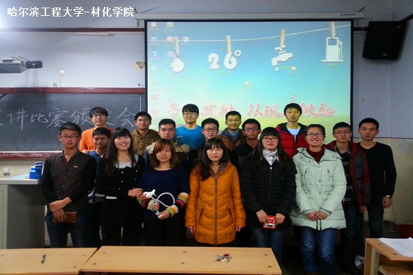 比赛中,选手们语言精简有力,演讲大方自然,语言朴素真诚,在场同学的阵阵掌声表达了对他们的认可。一位评委表示“参加决赛的选手们表现与预赛时相比有了很大提高,可以看出选手们准备非常充分,相信你们对核心价值观一定有了更深入的了解”。经过紧张激烈的角逐,大赛决出了团体赛以及个人赛的名次。赛后,由材化学院团委副书记为获奖选手们颁奖。