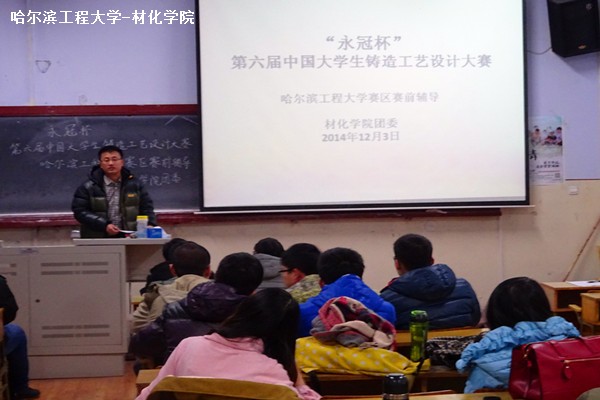 12月3日下午4点,由材化学院团委主办的“永冠杯”第六届中国大学生铸造工艺设计大赛——哈尔滨工程大学赛区赛前辅导在11号楼0126举行。材化学院历年铸造工艺设计大赛优秀指导教师盖登宇、侯乐干到场讲解指导。