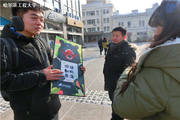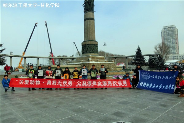 12月13日上午,为倡导珍爱动物,拒绝动物表演,真正实现人与动物的和谐相处。材化学院响应亚洲动物基金和中国青年动物保护联盟的号召在中央大街举办主题为“关爱动物,真我无表演”的公益宣传活动。学院全体团委学生会干部共16人参加。