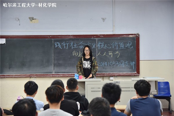此次活动主旨是使同学们更加了解社会主义核心价值观,践行社会主义核心价值观,真正做到向善向上 人人可为。班会一开始,团支书马可欣进行了一段演讲,简单介绍了社会主义核心价值观的概念内涵,使同学们对于社会主义核心价值观有初步的了解。演讲完毕,团支书马可欣组织同学们集体观看与核心主义价值观相关的视频和PPT。结束后同学们自有讨论感想、发表意见。看完ppt后,同学们进行了激烈的讨论,发表一些自己对核心主义价值观的看法和认识。