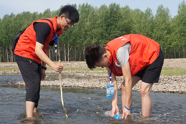 到达济沁江河岸后团委常务副书记带领全体实践团成员对济沁河以及周边环境进行调查,发现济沁河流量小但水质清澈,河岸有少量垃圾。在实践团对河水进行取样后,随即清理了河岸的垃圾。