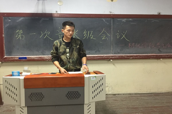 2017年9月15日18时30分,材化学院学生会于11号楼0124中教室举办第一次部长级及以上例会。会议由学生会主席向昆明主持,两位副主席及各部长参与此次例会。