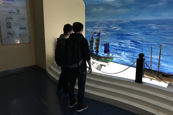 12时10分,首批参观同学在哈军工纪念馆前集合完毕,活动正式开始。从哈军工到哈船院再到哈工程,工程大学一直肩负着国家的重任,哈军工17年的办学历史以及学员在国家建设中的贡献便是承担起国家赋予的使命感与责任感的最好体现,而哈军工纪念馆正是这些往事的记录者。活动由工作人员讲解和同学自由参观两部分组成,讲解员向同学们按照“陈赓大将受命担重任”、“从无到有的创建”、以及“两老办院”的历史沿革进行讲解,讲解过后,同学们自行参观,大家在一件件见证这段历史的文物前驻足观看。随后,同学们来到船舶博物馆,伴随着中国十大名船模型的亮点,同学们沿着船舶发展史的顺序自行参观。