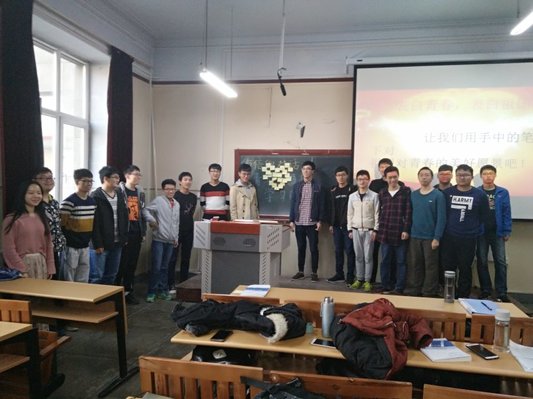 本次活动中还播放了部分班内同学对于当代大学生应如何肩负起青年责任的采访视频,其中一位同学说道:“习近平总书记是我们的楷模,学习的榜样,我们要树立远大理想,同时立足于脚下,努力学习文化知识,为实现自己的人生目标而努力奋斗。”在此次团日活动的最后大家纷纷拿起手中的笔写下了对于青春,对于祖国的美好憧憬,向十九大送去了自己的祝福,为祖国打call!