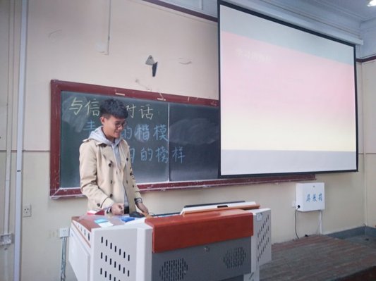 为使班级同学对《习近平的七年知青岁月》有更深入的学习认识,了解习近平总书记的胜利召开青年时期的成长故事,以奋发向上、团结一心的精神状态迎接党的十九大,10月18日14点30分,20161015团支部举办了以“与信仰对话:青年的楷模,学习的榜样”为主题的团日活动,团支部全体成员参加。