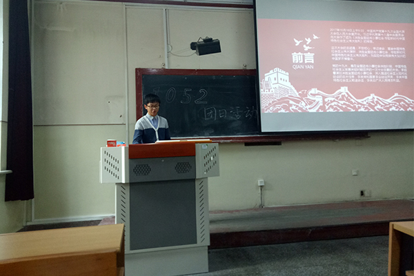 11月18日13:30,1052班十一月团日活动“喜迎十九大”于11号楼0133教室准时举行。本次活动由班长李晓鹏主持,全班31人满员参加。