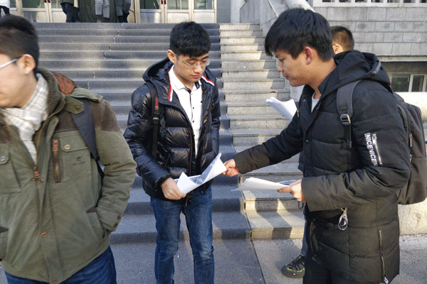 在普法宣传日到来之际,材化学院团委实践部组织了相关的竞赛活动,为增强活动的影响力组织了本次竞赛的宣传活动。本次的宣传主要为向广大在校学生发放宣传单并进行相关讲解和张贴海报两种宣传形式。通过张贴海报提高本次竞赛知名度,通过详细讲解对本次活动有更为深刻的认识和理解,从而达到较好的宣传效果。