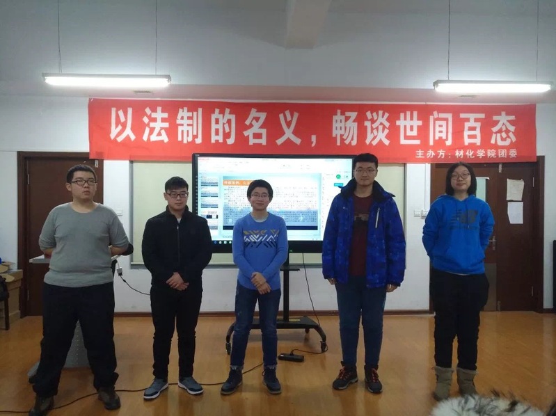 12月4日为法制宣传日,俗话说,“没有规矩,不成方圆”。法律作为约束人们行为的规范,是维护社会秩序的必要手段,而作为一名当代大学生也应积极培养法治精神。为了将不盲从舆论导向,自主用法治思想看待事物的思想根植于我们大学生心灵深处,材化学院团委举办了以“检察官:今晚我们听你说”为主题的普法宣传活动,本次活动以一种特别的形式探讨在泛信息化时代如何做到不盲从于舆论,用辩证的角度去考虑道德与法律的关系,以法律的名义,畅谈世间百态。