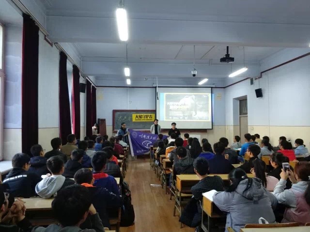 王森上台向学生干部们介绍根与芽活动的起源和宗旨,普及大象的相关知识,让学生干部们了解大象的生存现状和象牙制品消费的危害性,并进行有关大象及象牙制品的知识抢答,学生干部们踊跃举手发言,现场的气氛十分活跃。