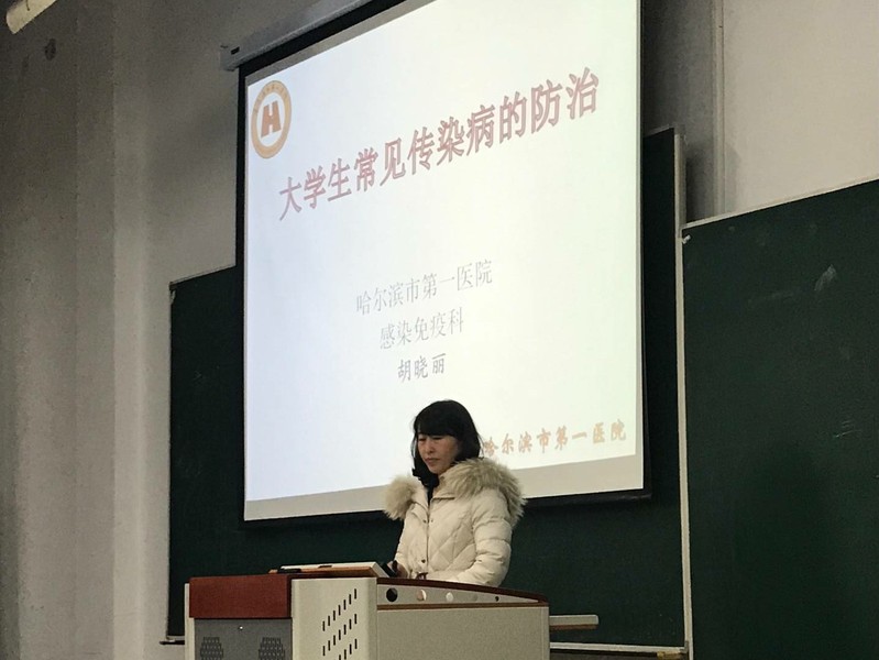11月24日下午13时30分,由校青年志愿者协会主办,材料科学与化学工程学院团委及航天与建筑工程学院团委承办的第4期沁心讲座于N楼102教室举办。哈尔滨市第一医院感染免疫科主任胡晓丽及哈尔滨市第一医院骨八科/骨微创治疗中心主治医师齐鹏飞担任本次讲座主讲人。