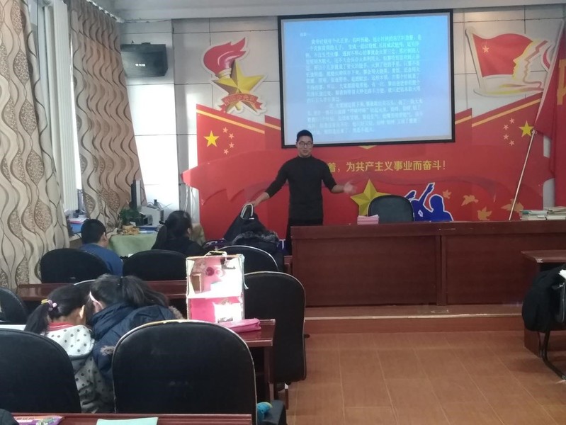 1123日上午10时,由20171015团支部为主体,校青年志愿者协会为依托,材化学院金手指志愿服务团队协办的2018年秋季学期“团聚爱心”公益行动在哈尔滨市学府小学开展。20171015团支部刘子裕、胥文浩、郭俊麟及金手指志愿服务队巩海将、李婉参与活动,刘子裕担任本次活动主讲人。