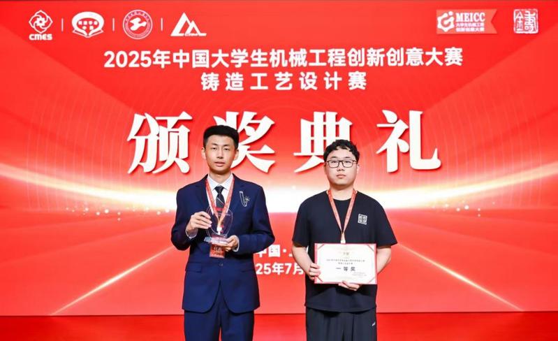 7月10日,2025年中国大学生机械工程创新创意大赛铸造工艺设计赛全国决赛在大连落幕,材化学院教师张贺新、赵成志指导,材化学院本科生邵启哲、李沐轩、赵英杰、饶丽浩团队设计的D件——钩身的工艺方案以D组四强的最终成绩获大赛全国总决赛一等奖。本届赛事共有159所参赛院校的1548件作品报名参赛,参赛学生共计5461名,最终入围全国总决赛的作品共计155件,评出一等奖69件,二等奖74件,三等奖12件。