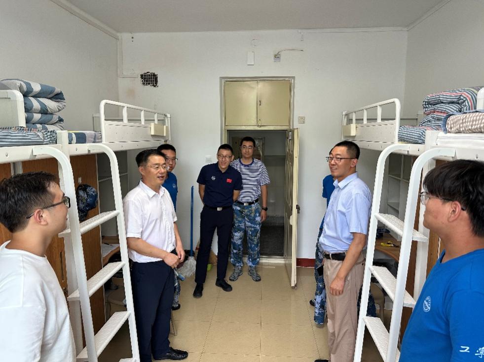 在学生第二公寓走访中,学院领导细致询问了新生的生活适应、学业规划等方面情况,并就生活习惯养成、和谐寝室关系构建等方面与新生们亲切交流。