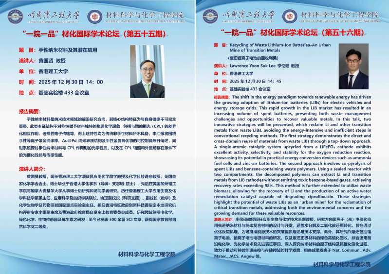 “一院一品”材化国际学术论坛(第五十五、五十六期)