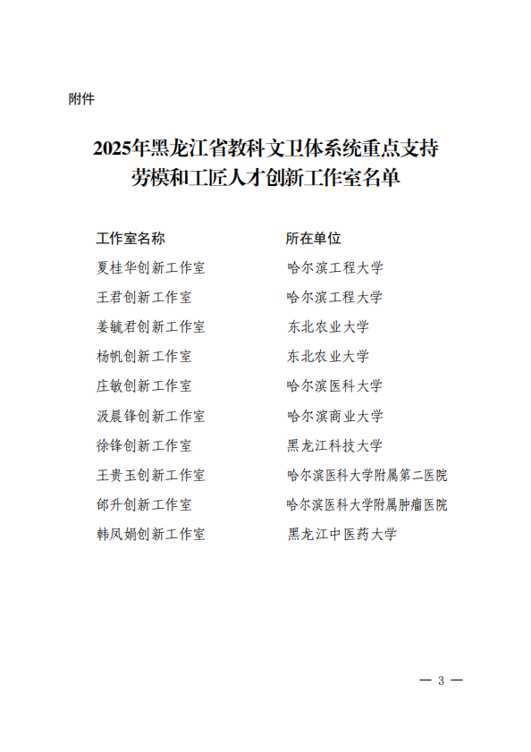 近日,黑龙江省教科文卫体工会发布《关于公布2025年重点支持的劳模和工匠人才创新工作室名单的通知》(黑教科文卫体工发〔2025〕23号),学院王君教授领衔的创新工作室成功入选,成为本年度全省教科文卫体工会重点支持的十个工作室之一。王君创新工作室针对海...
